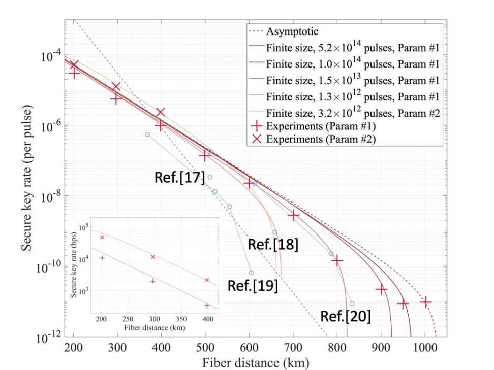 最遠(yuǎn)傳輸距離:賦同量子極低暗計(jì)數(shù)SNSPD器件助力中科大聯(lián)合團(tuán)隊(duì)創(chuàng)造了1002公里的單跨段光纖傳輸最遠(yuǎn)QKD傳輸距離,該研究成果驗(yàn)證了遠(yuǎn)距離下雙場量子密鑰分發(fā)方案的可行性,并驗(yàn)證了在城際光纖距離下可實(shí)現(xiàn)高成碼率的量子密鑰分發(fā)。