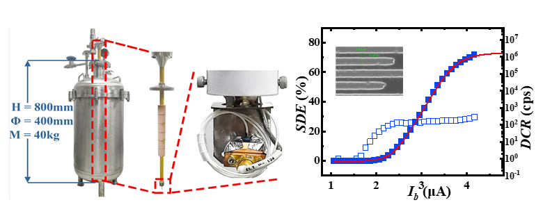 近日,中國科學(xué)院上海微系統(tǒng)所李浩、尤立星團(tuán)隊(duì)和賦同量子科技(浙江)有限公司合作,成功研制了基于小型液氦杜瓦(工作溫度4.2K)、在1550nm波段系統(tǒng)探測效率超過70%的移動式超導(dǎo)單光子探測系統(tǒng),為未來開展基于移動平臺(機(jī)載、車載等)的高性能單光子探應(yīng)用鋪平了道路。相關(guān)研究成果以《在1550nm波段探測效率超過70%的移動式超導(dǎo)條帶光子探測系統(tǒng)(Mobile superconducting strip photon detection system with efficiency over 70% at a 1550 nm wavelength)》為題,發(fā)表在Optics Express上。