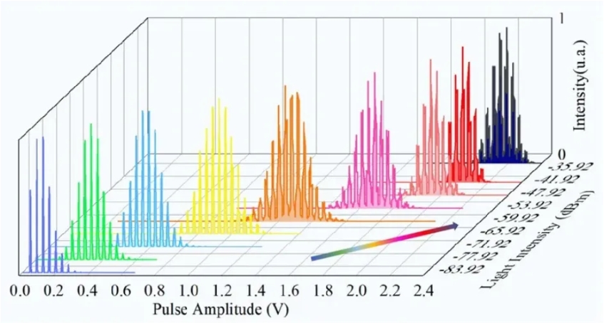 A:隨著探測器性能尤其是單光子探測效率接近100%探測極限,我們將進入到新的研究階段——光子數(shù)分辨探測。傳統(tǒng)探測器無法有效分辨光脈沖中的光子數(shù)目,而我們本次研究結果不僅能探測,還將光子分辨數(shù)目提升至61,這是一個很高的水平。還有一個重要方向就是通過更少的通道,比如單個通道便可以實現(xiàn)20甚至30個以上的光子數(shù)分辨。目前我們也已經(jīng)取得一些重要突破,希望近期就可以推向應用。