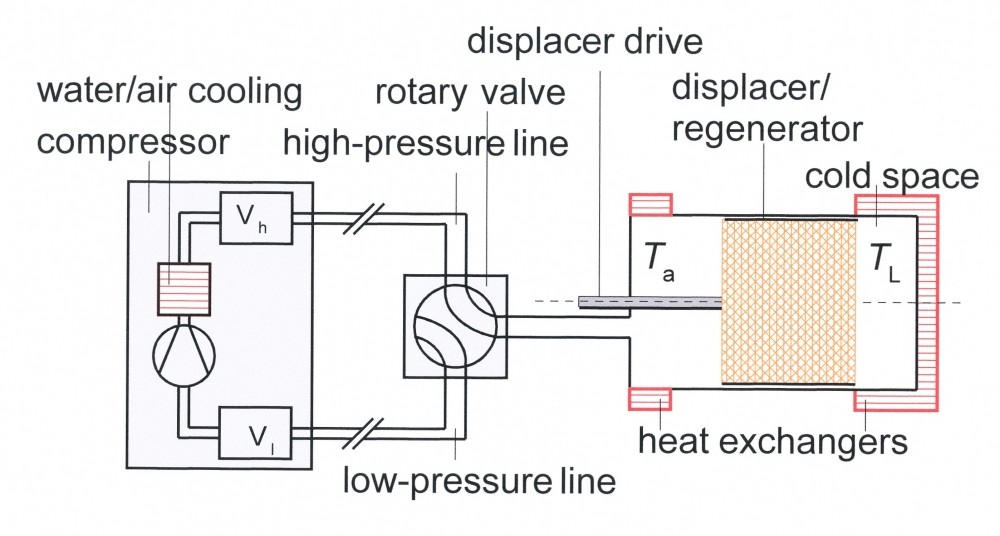 G-M制冷機(jī)主要由壓縮機(jī)和冷頭兩部分組成: